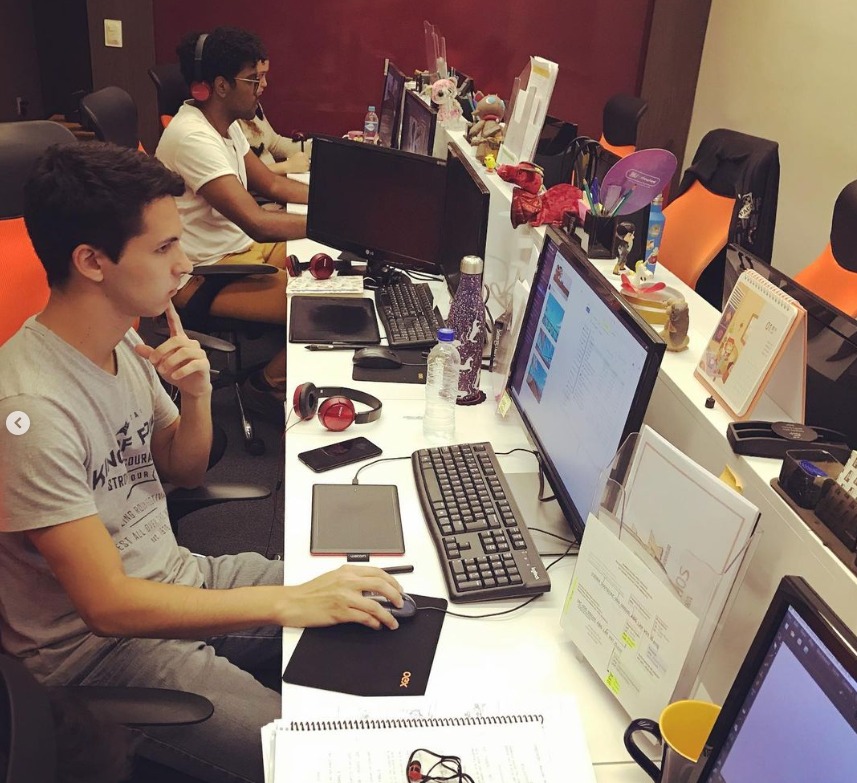 Para chegar ao ponto em que Otávio Garcia veio a participar de uma grande produção do cinema mineiro, é necessário, antes, recapitular como foram os seus primeiros passos ainda no curso de Cinema e Artes Digitais. “Por entrar em um curso mais desconhecido (Cinema de Animação e Artes Digitais), sempre ficava na dúvida se o mercado profissional da área conseguiria abarcar a demanda de profissionais formados e, por isso, me esforcei bastante e fiz com que minhas incertezas se transformassem em combustível de estudo. O CSA foi muito importante para que eu mantivesse a disciplina necessária para conseguir estudar por fora da Faculdade o que hoje mais utilizo no trabalho, a pintura digital. Então, no segundo ano de Faculdade, mandei meu portfólio para uma produtora de BH, fiz um teste e acabei passando para participar do primeiro longa de animação produzido em Minas Gerais como cenarista. De lá pra cá, continuei na área com projetos de curtas metragens e hoje estou acabando minha participação no segundo longa (agora de uma produtora do Rio de Janeiro).”