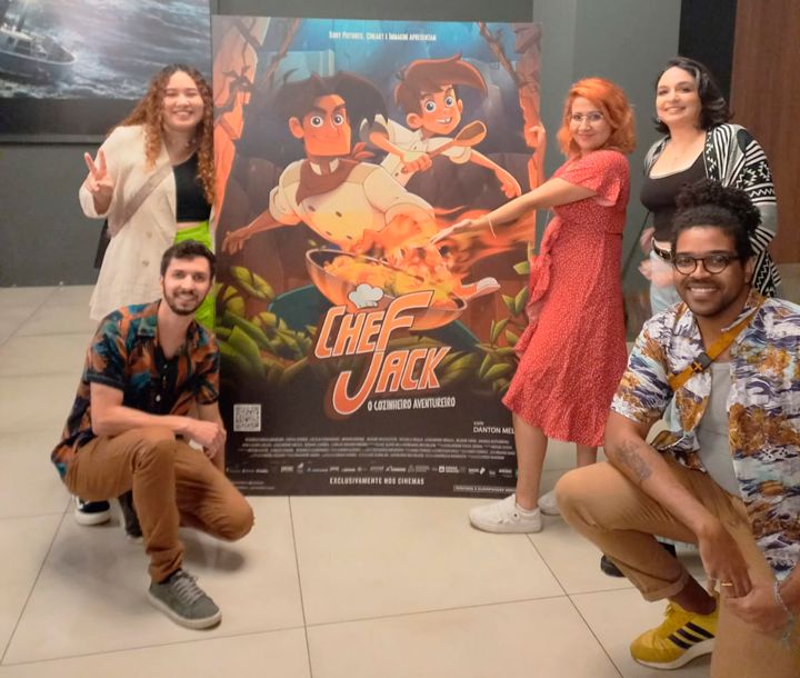 Otávio e seus colegas de trabalho no lançamento da animação Chef Jack