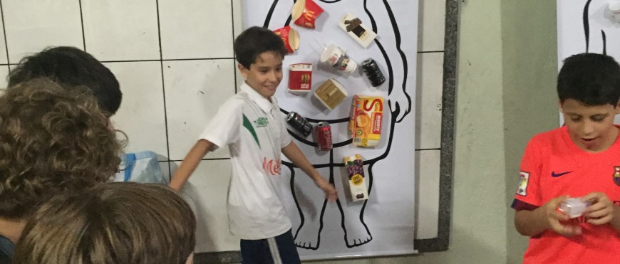 2) Desenvolvimento de dinâmica de grupo durante a qual alguns atletas tiveram de selecionar os alimentos que elas achavam que eram ingeridos por dois jogadores de composição corporal diferente: Ronaldo “Fenômeno”, ex-jogador e melhor do mundo, e Neymar, atual melhor jogador brasileiro;